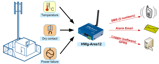 Ares12 و Ares14 دستگاههای مانیتورینگ از راه دور شرایط محیطی تحت SMS و GPRS که در مناطق تحت پوشش شبکه موبایل و GSM قابل استفاده می باشند.